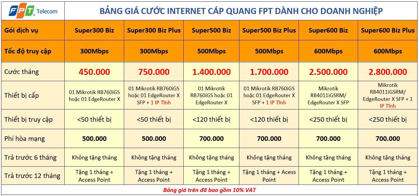3. Bảng giá Internet FPT dành cho Doanh nghiệp