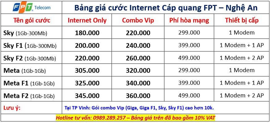 Lưu ý: Vui lòng gọi Hotline 0989.289.257 để nhận báo giá chi tiết và các ưu đãi mới nhất cho gói cước cá nhân và gia đình FPT tại Nghệ An.